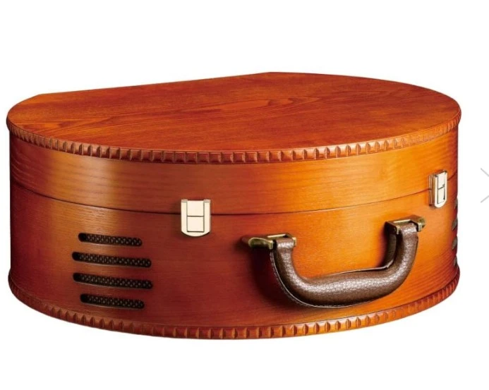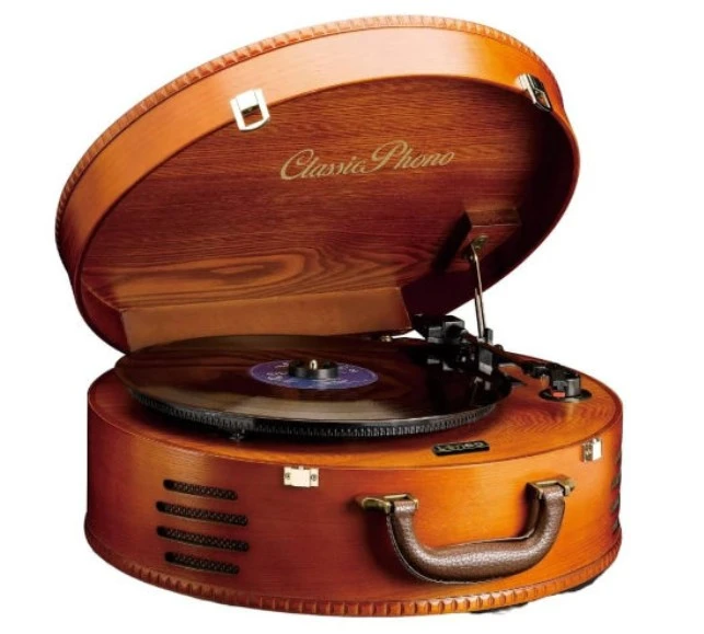 פטיפון מפואר ומסוגנן בעיצוב רטרו בעל מארז עץ עגול ויוקרתי