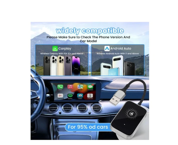 ה-CarPlay ו-Android Auto Wireless Adapter שלנו תומך במגוון רחב של דגמי רכבים – טויוטה, יונדאי, קיה, מאזדה, הונדה, ניסאן, ב.מ.וו, פולקסווגן ועוד – ומתחבר לכל מערכת מקורית או אפטר-מרקט שתומכת בחיבור קווי. ההתקנה פשוטה: מחברים את המתאם ל-USB ברכב, ממתינים כמה שניות, והמערכת מתחברת באופן אוטומטי בכל התנעה.