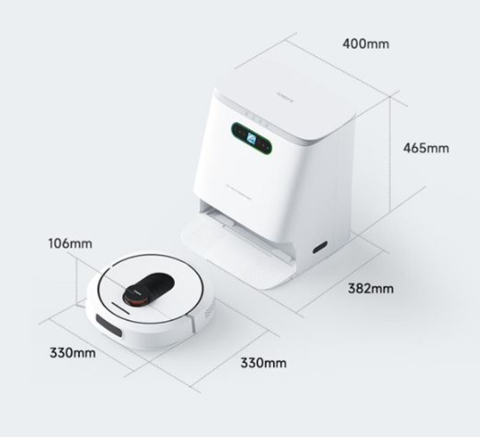 - תחנת עגינה חכמה: ריקון אוטומטי של מיכל האבק ויבוש עצמי של מטליות השטיפה.