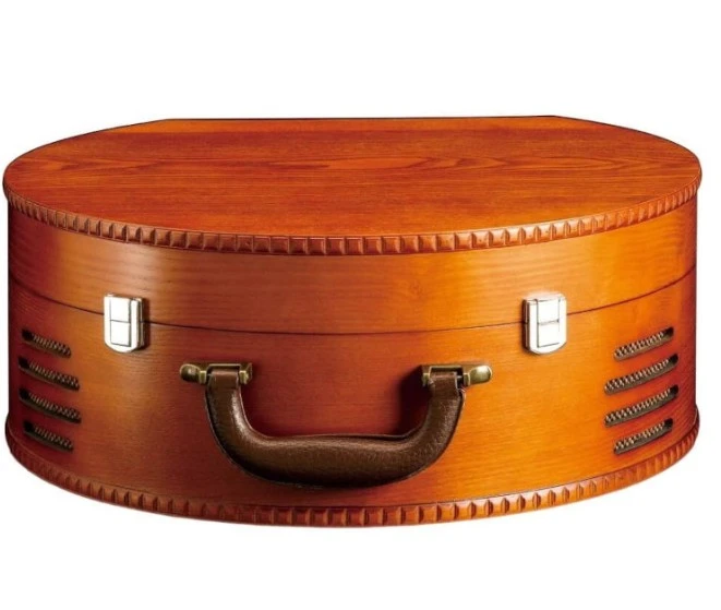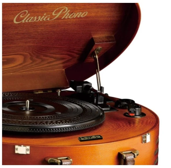 פטיפון מפואר ומסוגנן בעיצוב רטרו בעל מארז עץ עגול ויוקרתי